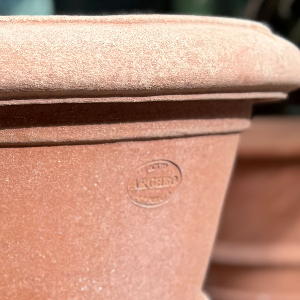 Material: Arcilla de Impruneta (Arcilla de la Toscana ), gran resistencia, color característico y durabilidad. Usada para macetas, esculturas y elementos decorativos.
